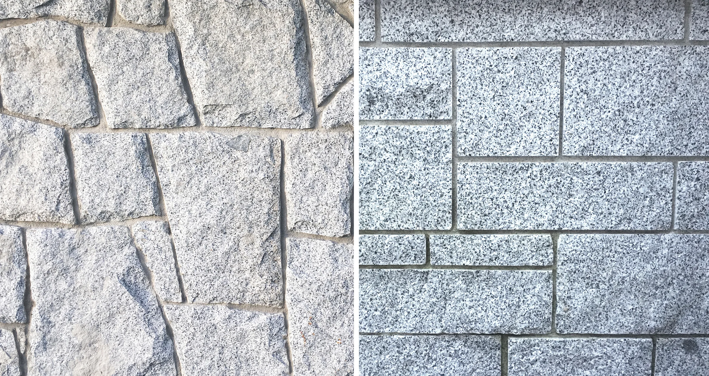 Real stone is a superior product. It’s stronger than concrete, more resistant to freezing, absorbs less water, doesn’t fade and requires less maintenance. The cost may be the same or more than stone veneer in the short term, but it’s actually less expensive over the long term because it doesn’t wear. Real stone can also be cut and acid/power washed without losing colour or changing consistency. Plus it’s the real thing. Every stone is unique.